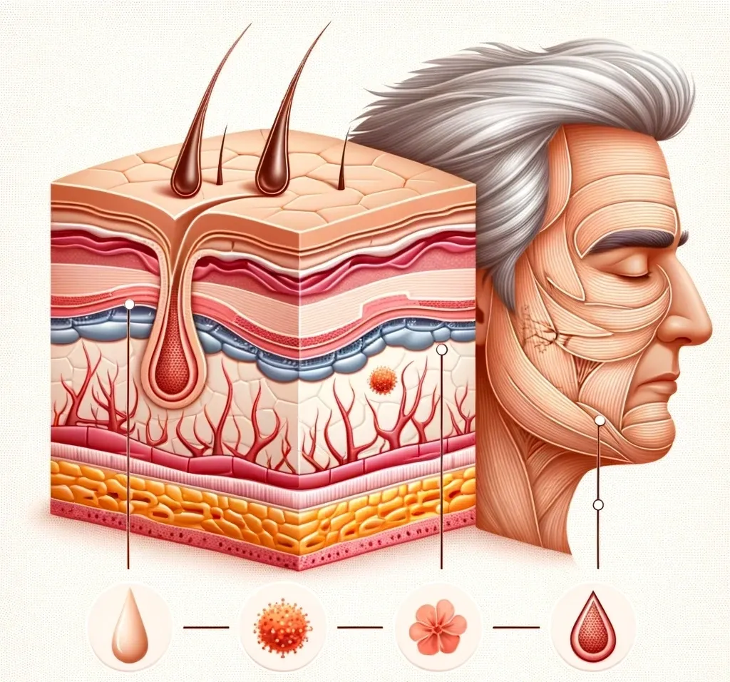 پیری یک فرآیند زیستی اجتنابناپذیر است که بهتدریج ساختار و عملکرد پوست را تغییر میدهد. این تغییرات شامل کاهش تولید کلاژن، الاستین و هیالورونیک اسید است که برای استحکام، انعطافپذیری و رطوبت پوست ضروری هستند.